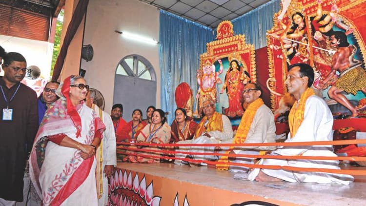 दुर्गा पूजा समारोह के दौरान बांग्लादेश में मुस्लिम कट्टरपंथियों ने हिन्दू मंदिरों और दुर्गा पूजा पंडालों पर हमला कर दिया. बांग्लादेश के मुस्लिमों ने मंदिर और पूजा पंडालों में तोड़फोड़ भी की. इस घटना के बाद वहां हिंसा भड़क गई जिसमें चार लोगों की मौत हो गई, और दर्जनों लोग घायल हो गए. वहीं घटना के बाद शेख हसीना सरकार 22 जिलों में अर्ध सैनिक बल तैनात कर दिए हैं. साथ ही भारत को एक नसीहत दी है.