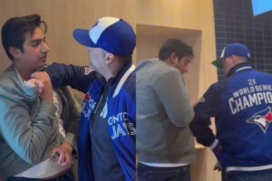 Man in Blue Jays gear attacks a random person at McDonald’s without provocation.