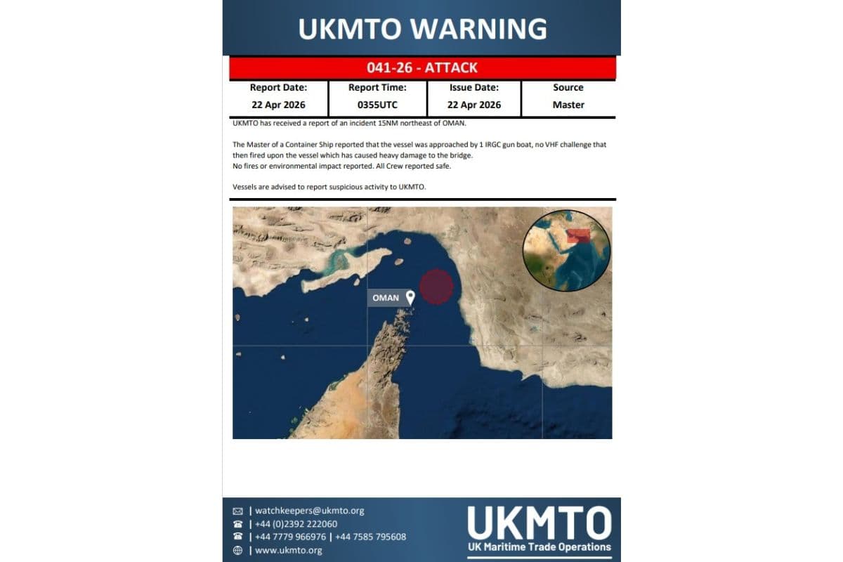यूनाइटेड किंगडम मैरीटाइम ट्रेड ऑपरेशंस (UKMTO) की रिपोर्ट के अनुसार, यह हमला सुबह करीब 7:55 बजे हुआ. ईरान की रिवोल्यूशनरी गार्ड से जुड़ी एक गनबोट ने बिना किसी बातचीत या चेतावनी के सीधे कंटेनर शिप पर गोलियां चला दीं. यह जहाज दुनिया के सबसे महत्वपूर्ण तेल और व्यापारिक मार्ग से गुजर रहा था. हालांकि फायरिंग हुई, लेकिन जहाज के क्रू मेंबर्स सुरक्षित हैं. ईरान की ओर से अब तक इस घटना पर कोई आधिकारिक बयान या सफाई नहीं आई है.