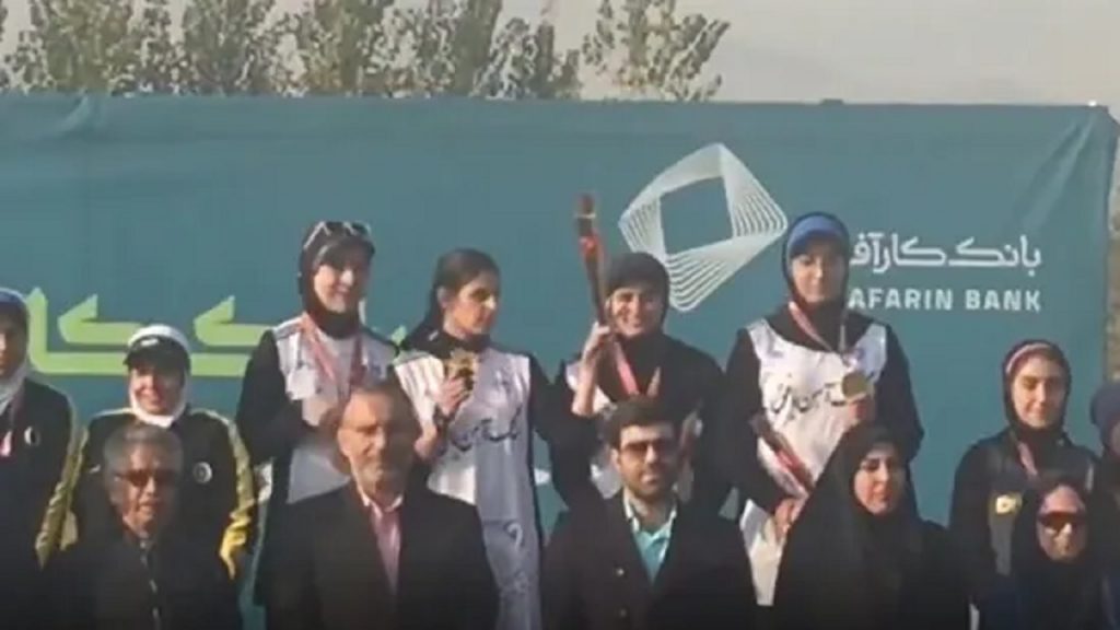 Parmida Ghassemi, a prolific athlete, removes her hijab in front of officials during the award ceremony.