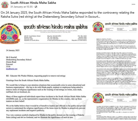 शिक्षक का दावा था कि स्कूल सांस्कृतिक या धार्मिक प्रतीकों को पहनने की अनुमति नहीं देता है. हिंदू महासभा ने एक प्रेस बयान जारी किया है. इसमें कहा गया है कि एक शिक्षक द्वारा हिंदू छात्रा का कलावा काटने की हम निंदा करते हैं. यह काम असंवेदनशील और गैरजिम्मेदाराना है. इसके खिलाफ कार्रवाई की जानी चाहिए. संगठन की मांग पर क्या कार्रवाई की गई, इस संबंध में जानकारी अबतक सामने नहीं आई है. दक्षिण अफ्रीका की इस घटना को लेकर कुछ सोशल मीडिया यूजर रिएक्ट भी कर रहे हैं.