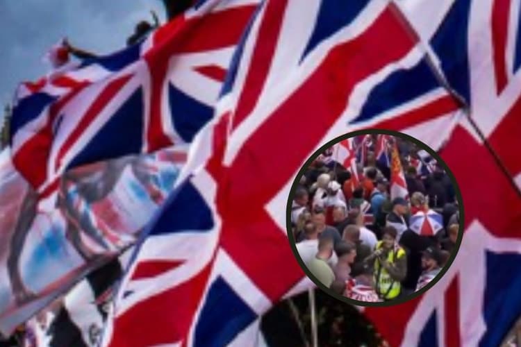 London Protest Video : ब्रिटेन की राजधानी लंदन में शनिवार को हालिया इतिहास का सबसे बड़ा प्रदर्शन देखने को मिला. यह प्रदर्शन दक्षिणपंथी संगठनों ने किया. इसमें एक लाख से ज्यादा लोग शामिल हुए. यह रैली ‘यूनाइट द किंगडम मार्च’ के नाम से निकाली गई थी, जिसका नेतृत्व एंटी-इमिग्रेशन कार्यकर्ता टॉमी रॉबिन्सन ने किया. इस प्रदर्शन का वीडियो सोशल मीडिया पर वायरल हो रहा है. दावा किया जा रहा है कि इसमें 30 लाख लोग पहुंचे थे. देखें ये वीडियो.