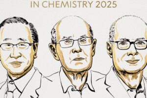 Nobel Chemistry Prize 2025: रसायन विज्ञान का नोबेल 2025 सुसुमु कितागावा, रिचर्ड रॉबसन और उमर याघी को मिला. MOF तकनीक से गैसें और रसायन नियंत्रित, पानी इकट्ठा और कार्बन डाइऑक्साइड एबसोर्ब और रासायनिक प्रतिक्रियाओं को उत्प्रेरित करने में किया जा सकता है. नोबेल विजेताओं की पूरी कहानी और इनकी खोज का महत्व के बारे में जानें.