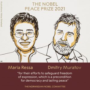 फिलीपीन की पत्रकार मारिया रसा और रूसी पत्रकार दमित्री मुरातोव को नोबेल शांति पुरस्कार के लिए इस वर्ष चुनाव गया है. मारिया रेसा फिलीपींस की पत्रकार हैं और वहां उन्होंने सत्ता के दुरुपयोग, हिंसा के उपयोग और बढ़ते अधिनायकवाद को उजागर करने के लिए अभिव्यक्ति की स्वतंत्रता का उपयोग किया. इन्होंने 2012 में rappler.com की स्थापना की जिसने अभिव्यक्ति की स्वतंत्रता के एक निडर रक्षक के रूप में काम किया. इन्होंने जानलेवा ड्रग-विरोधी अभियान पर काम किया.