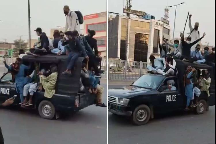 पाकिस्तान में जारी हिंसक झड़पों के बीच तहरीक-ए-लब्बैक पाकिस्तान (टीएलपी) के कार्यकर्ताओं ने शुक्रवार को पुलिस की एक गाड़ी पर कब्जा कर लिया और उसे जबरन अपने कब्जे में लेकर ले गए. जनरल आसिम मुनीर के नेतृत्व वाले नए पाकिस्तान में कानून-व्यवस्था की स्थिति पर गंभीर सवाल खड़े करती है. पुलिस वाहन पर इतने लोग सवार थे कि केवल गाड़ी के टायर की ही हवा नहीं निकली, पूरी की पूरी गाड़ी की हवा खराब हो गई है. किसी तरह वह रेंगते हुए चल रही थी. इसका एक वीडियो सोशल मीडिया पर वायरल हो रहा है. देखें-