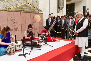 प्रधानमंत्री नरेंद्र मोदी ने चीन के तियानजिन स्थित एक होटल में भारतीय शास्त्रीय संगीत और नृत्य का आनंद उठाया. ये कलाकार चीनी नागरिक हैं जो वर्षों से भारतीय शास्त्रीय संगीत और नृत्य सीख रहे हैं. प्रधानमंत्री नरेंद्र मोदी के स्वागत में प्रस्तुति देने वाली एक भरतनाट्यम नृत्यांगना ने कहा, “हमें भारतीय संस्कृति और कला से प्यार है. इसलिए, प्रधानमंत्री के लिए प्रस्तुति देने पर हमें बहुत गर्व महसूस हो रहा है,”