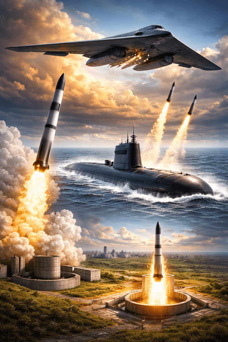 न्यूक्लियर ट्रायड के जमीनी हिस्से में अंतरमहाद्वीपीय बैलिस्टिक मिसाइलें शामिल होती हैं. ये बेहद लंबी दूरी तक मार करने वाली मिसाइलें थीं, जो हजारों किलोमीटर दूर तक परमाणु हथियार पहुंचा सकती थीं. समुद्री हिस्से में परमाणु ऊर्जा से चलने वाली पनडुब्बियां (सबमरीन लॉन्च्ड बैलिस्टिक मिसाइल) होती थीं. इन पनडुब्बियों की सबसे बड़ी ताकत यह थी कि ये महीनों तक समुद्र में छिपी रह सकती थीं और दुश्मन को पता भी नहीं चलता था कि वे कहां हैं. हवाई हिस्से में बड़े रणनीतिक बमवर्षक विमान शामिल थे, जो परमाणु बम या मिसाइलें लेकर दुश्मन के इलाके तक उड़ान भर सकते थे. इन विमानों का फायदा यह था कि इन्हें आखिरी समय में वापस भी बुलाया जा सकता था, यानी ये कुछ हद तक लचीलापन देते थे.