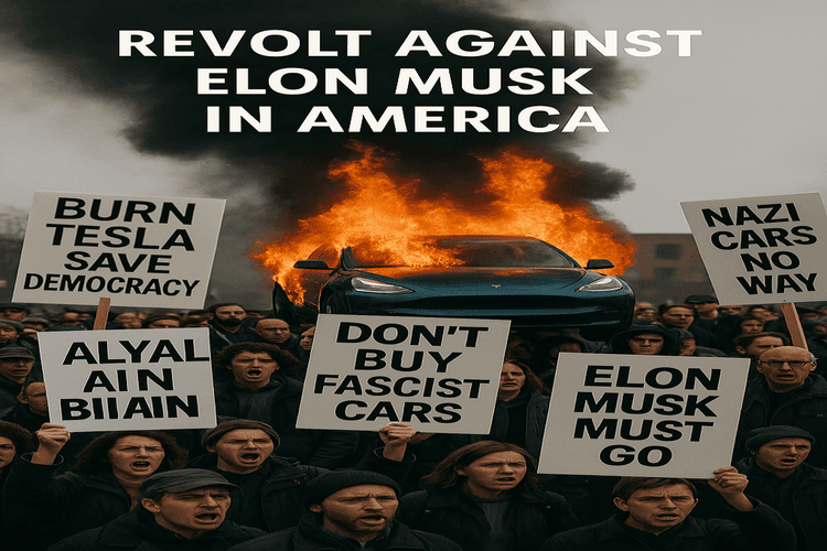 टेस्ला के शोरूम और सेंटर पर हमला (Revolt against Elon Musk)