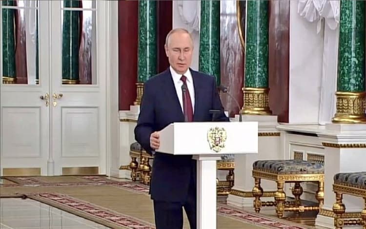 पुतिन ने कहा कि पश्चिमी देश जानते हैं कि ‘‘युद्ध के मैदान में रूस को हराना असंभव है, इसलिए उन्होंने ऐतिहासिक तथ्यों को गलत तरीके से प्रस्तुत करके दुष्प्रचार हमले शुरू किये रूसी संस्कृति, धर्म और मूल्यों पर हमला किया. युद्ध को जायज बताते हुए पुतिन ने दावा किया कि उनकी सेना यूक्रेन के क्षेत्रों में नागरिकों की रक्षा कर रही है. राष्ट्रपति ने कहा कि हम लोगों के जीवन, अपने घर की रक्षा कर रहे हैं…और पश्चिम वर्चस्व स्थापित करने का प्रयास कर रहा है.