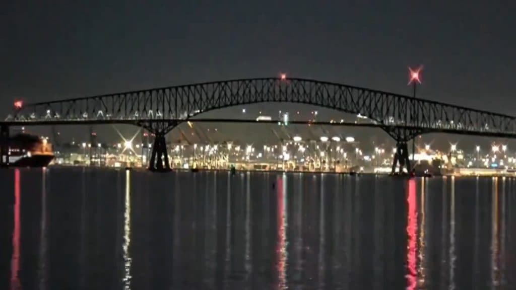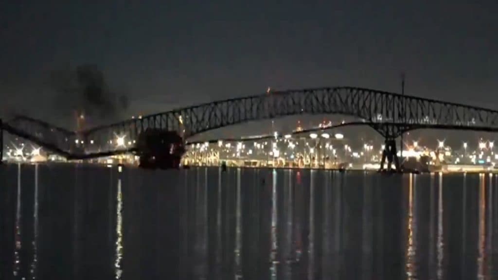 बाल्टीमोर में फ्रांसिस स्कॉट की ब्रिज मंगलवार सुबह एक बड़े जहाज से टकराने के बाद ढह गया. घटना के वक्त पुल पर कई गाड़ियां चल रही थीं. ब्रिज ढहने का वीडियो सोशल मीडिया ‘एक्स’ पर तेजी से वायरल हो रहा है. वीडियो में साफ देखा जा सकता है कि पोत ‘फ्रांसिस स्कॉट की ब्रिज’ के एक स्तंभ से टकराता है, जिससे पुल ढहकर पानी में गिर गया. टक्कर के बाद पोत में भी आग लग गई और ऐसा अनुमान लगाया जा रहा है कि वह डूब गया.