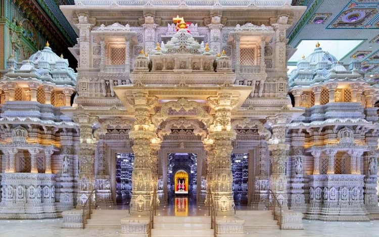 आधुनिक युग में भारत के बाहर निर्मित दुनिया के दूसरे सबसे बड़े हिंदू मंदिर का उद्घाटन होने जा रहा है जिसको लेकर लोगों में काफी उत्साह है. इस हिंदू मंदिर का उद्घाटन आठ अक्टूबर को न्यू जर्सी में होगा. न्यूयॉर्क स्थित टाइम्स स्क्वायर से लगभग 60 मील दक्षिण में और वाशिंगटन डीसी से लगभग 180 मील उत्तर में स्थित न्यूजर्सी के रॉबिन्सविले टाउनशिप में बीएपीएस (बोचासनवासी अक्षर पुरुषोत्तम स्वामीनारायण संस्था) स्वामीनारायण अक्षरधाम मंदिर का निर्माण 2011 में शुरू हुआ था और इसके निर्माण में 12,500 से अधिक स्वयंसेवकों ने मदद की. मंदिर के औपचारिक उद्घाटन से पहले ही यहां दर्शन के लिए रोजाना हजारों लोग आते हैं. अधरधाम के नाम से प्रसिद्ध यह मंदिर 183 एकड़ क्षेत्र में बनाया गया है. इस मंदिर को प्राचीन हिंदू धर्मग्रंथों के अनुसार बनाया गया है और इसमें 10,000 मूर्तियों एवं प्रतिमाओं, भारतीय संगीत वाद्ययंत्रों और नृत्य रूपों की नक्काशी सहित प्राचीन भारतीय संस्कृति को दर्शाया गया है. यह मंदिर कंबोडिया स्थित अंकोरवाट के बाद संभवत: दूसरा सबसे बड़ा मंदिर है.