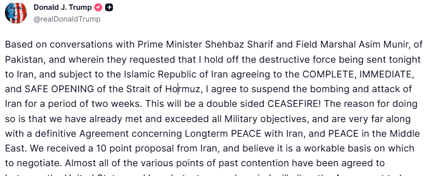 खत्म हुई जंग! ट्रंप ने किया दो हफ्ते के सीजफायर का ऐलान, ईरान होर्मुज खोलने पर राजी