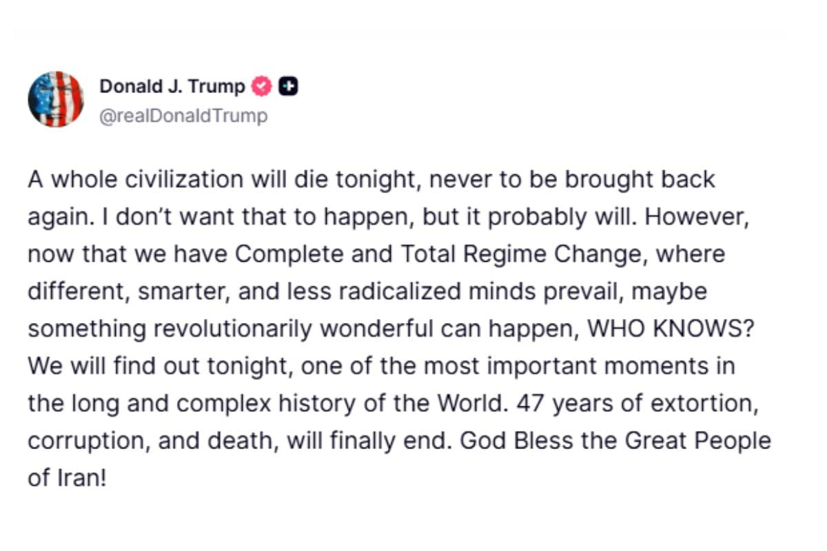 ट्रुथ सोशल पर ट्रंप का पोस्ट