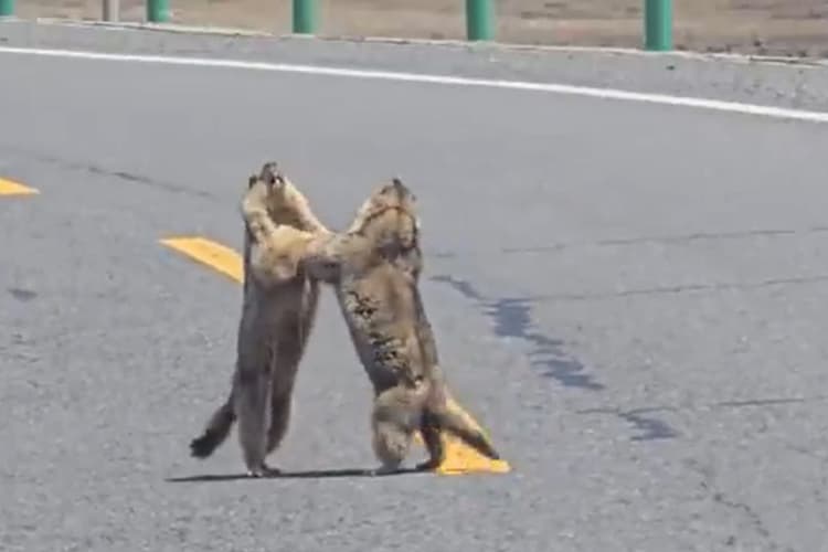 इस लड़ाई का वीडियो तेजी से वायरल हो रहा है. गिलहरी की तरह दिखने वाले ग्राउंडहॉग दो पैरों पर खड़े होकर एक दूसरे से फाइट कर रहे हैं. कभी सूमो फाइटिंग के अंदाज में दोनों एक दूसरे को पीछे धकेलने की कोशिश में लगे हैं. कभी पंच मारते नजर आ रहे हैं. लोगों ने इसकी फाइट को खूब इंजॉय किया है. देखते ही देखते वीडियो सोशल मीडिया पर वायरल होने लगा है.