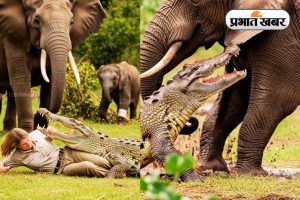 थोड़ी देर बाद हाथी के बच्चे के साथ महिला नदी के किनारे बैठी दिख रही है. अचानक नदी से एक मगरमच्छ आता है और हाथी के बच्चे और महिला पर झपट पड़ता है. महिला को दबोचने की कोशिश करता है. इसी बीच हाथी पूरी ताकत से मगरमच्छ पर टूट पड़ता है. सूंड और दोनों पैरों से खूंखार मगरमच्छ से दूर धकेल देता है.