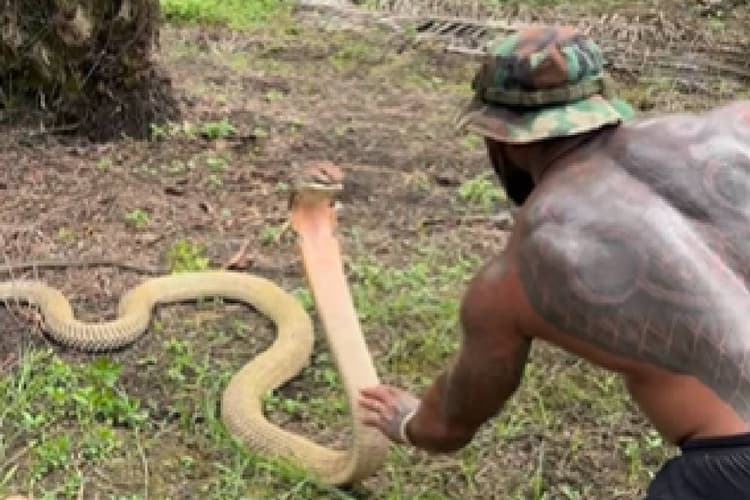 वीडियो में नजर आ रहे शख्स का नाम माइक हॉलस्टन है जो एक फेमस वाइल्ड लाइफ लवर है. इस वीडियो में हॉलस्टन एक विशाल किंग कोबरा को अपने हाथ में पकड़े कर व्यूअर्स को किंग कोबरा के बारे में बता रहे हैं. हॉलस्टन के हाथों में किंग कोबरा बहुत शांत नजर आ रहा है जिससे ऐसा लग रहा है जैसे कोबरा हॉलस्टन का पालतू जानवर हो. वीडियो में दिख रहा किंग कोबरा हॉलस्टन से भी लंबा है, जो उनके साहस को दिखाता है.