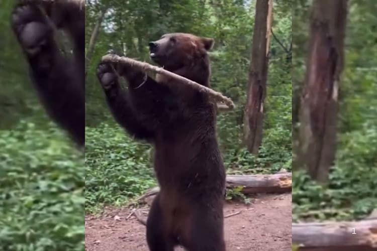 Viral Video: सर्कस में या टीवी पर आपके भालू के कई करतब देखे होंगे. लेकिन, जंगल में खतरनाक भालू का ऐसा करतब शायद आपने पहले नहीं देखा होगा. सोशल मीडिया में इस भालू का करतब तेजी से वायरल हो रहा है. बड़ा और खतरनाक भालू सर्कस के किसी ट्रेंड जानवर की तरह एक छल्ले को उठाकर उसे अपने शरीर के चारों से तेजी से घुमा रहा है. सोशल मीडिया पर कई यूजर्स ने भालू के इस करतब को काफी पसंद किया है.
