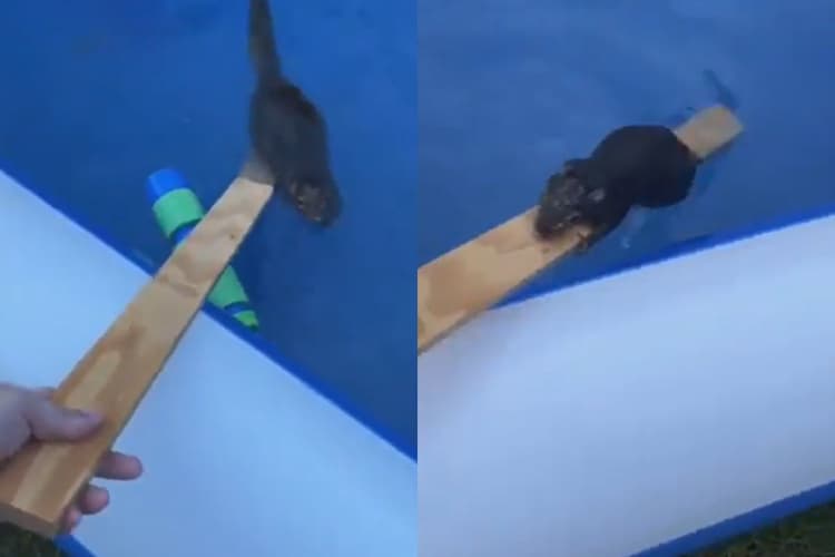 वीडियो में दिख रहा है कि प्लास्टिक से बने एक पुल में गिलहरी लगातार तैरने की कोशिश कर रही है. वो किसी तरह पुल में गिर गई थी, और लगातार निकलने की असफल कोशिश कर रही थी. इसी बीच एक शख्स बड़ी सी लकड़ी लेकर गिलहरी के पास आता है. वो शख्स उसे पानी से निकालने की कोशिश करने लगता है, पहले तो गिलहरी थोड़ा घबराई, लेकिन बाद में उस डंडे के सहारे वो पानी से निकल जाती है. सोशल मीडिया पर यह वीडियो तेजी से वायरल हो रहा है. गिलहरी का शरीर बहुत सूजा हुआ लग रहा है, इसका मतलब है वो काफी देर से पानी में गिरी हुई होगी.
