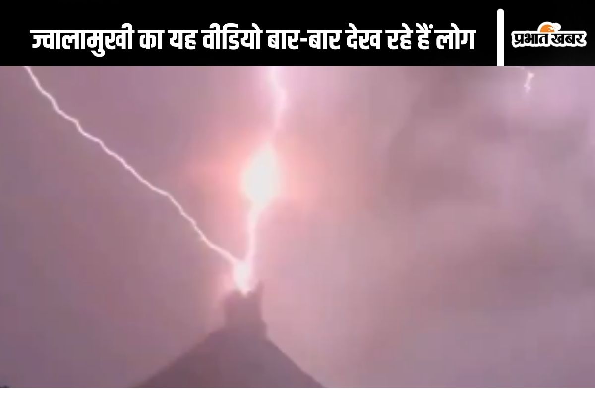 वीडियो में नजर आ रहा है कि आसमान में बिजली चमक रही है. ठीक उसके नीचे ज्वालामुखी का लावा उठ रहा है. लावा के धुएं के ठीक ऊपर बिजली की चमक लोगों का मन मोह लेती है. वहां कुछ लोगों की मौजूदगी है. इनमें से किसी ने अपने मोबाइल के कैमरे में वीडियो कैद कर लिया जो अब वायरल हो रहा है. आप भी देखें ये वीडियो