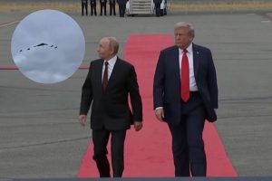भारतीय समयानुसार शनिवार रात 12 बजकर 35 मिनट पर रूसी राष्ट्रपति व्लादिमीर पुतिन अलास्का पहुंचे. इससे पहले अमेरिका के राष्ट्रपति डोनाल्ड ट्रंप का विमान ‘एयरफोर्स वन’ लैंड कर चुका था. रेड कार्पेट पर दोनों नेताओं ने हाथ मिलाकर गर्मजोशी से स्वागत किया. मुलाकात के दौरान अमेरिकी वायुसेना का पावर शो देखने को मिला, जो कि लोगों का ध्यान खींचने वाला रहा है. जब दोनों देशों के नेता रेड कार्पेट पर चल रहे थे, तभी तेज गड़गड़ाहट के साथ अमेरिकी B-2 स्टील्थ बॉम्बर और F-22 फाइटर जेट्स ने फ्लाईओवर किया, जिसे पुतिन ने सिर ऊपर कर के देखा, जबकि राष्ट्रपति ट्रंप मुस्कुराते हुए आगे बढ़ते रहे.