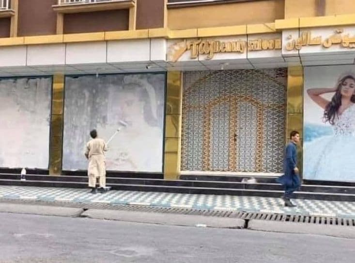 महिलाओं के प्रति तालिबान का रुख क्या होगा इसका आगाज अफगानिस्तान पर कब्जे के साथ ही तालिबान ने कर दिया है. रविवार को जैसे ही तालिबान ने सफलतापूर्वक अफगानिस्तान पर अपना नियंत्रण किया. उसने दीवारों पर लगी महिलाओं की तस्वीरों को ढंकना शुरू कर दिया. इस कड़ी में ट्विटर पर एक तस्वीर आई है जिसमें एक व्यक्ति काबुल में एक दीवार पर चित्रित महिलाओं की तस्वीरों को कवर कर रहा है.
